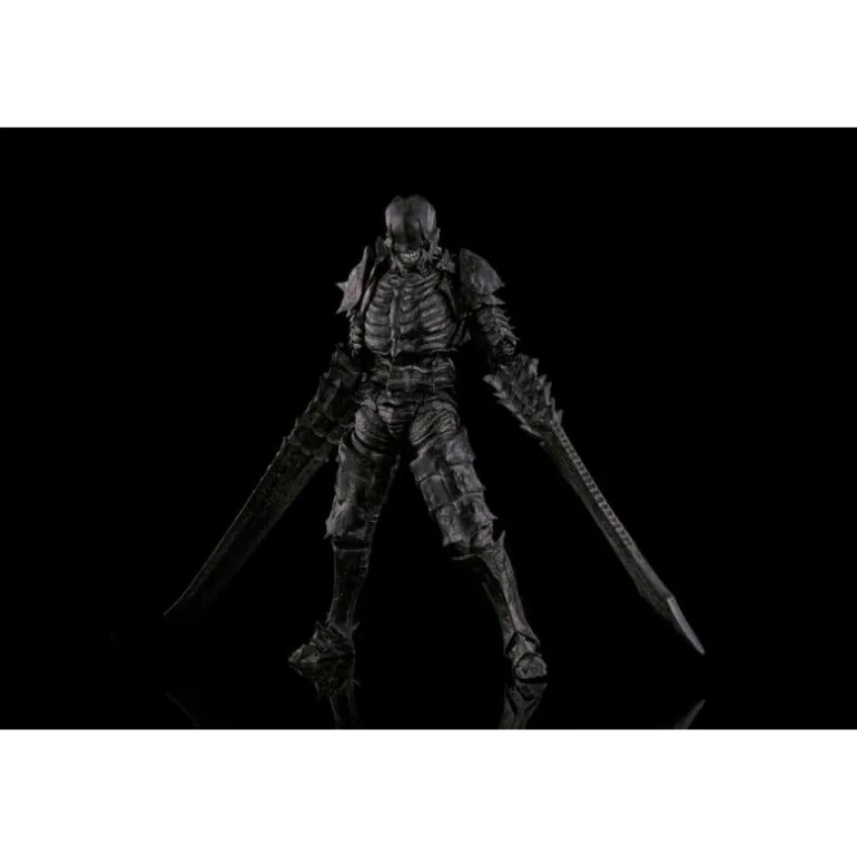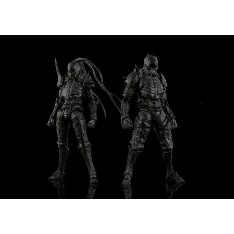 Las figuras, de color negro azabache, presentan un detallado acabado esquelético y accesorios que acentúan su presencia. Cada figura está dotada de articulaciones múltiples, permitiendo una amplia gama de poses dinámicas. Con un tamaño global de 22,8 x 29,4 x 15 cm y un peso de 777 gramos, es un set ideal tanto para exhibir como para coleccionar.