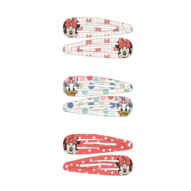 Descubre los encantadores accesorios para el pelo de Minnie Mouse, perfectos para aportar un toque divertido y colorido a cualquier peinado. Este set incluye seis clips de diseño exclusivo, todos adornados con los adorables rostros de Minnie y su inseparable amiga Daisy.
