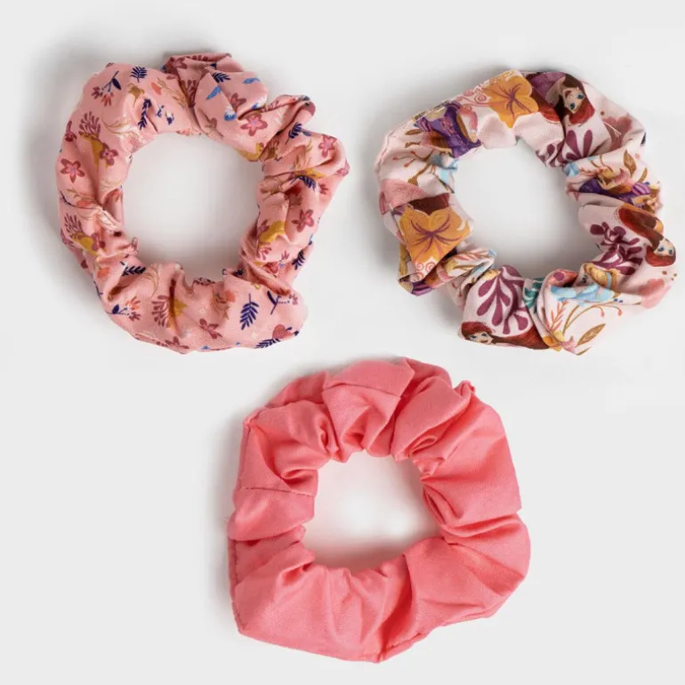 Descubre la encantadora colección de coletos de tela de la línea Princess, perfecta para añadir un toque de magia a cualquier peinado. Este set incluye tres piezas exquisitamente diseñadas, cada una con un estilo único que refleja la esencia de los personajes más queridos de Disney. Los coletos están elaborados en un suave material de 100% poliéster, garantizando comodidad y durabilidad para su uso diario.