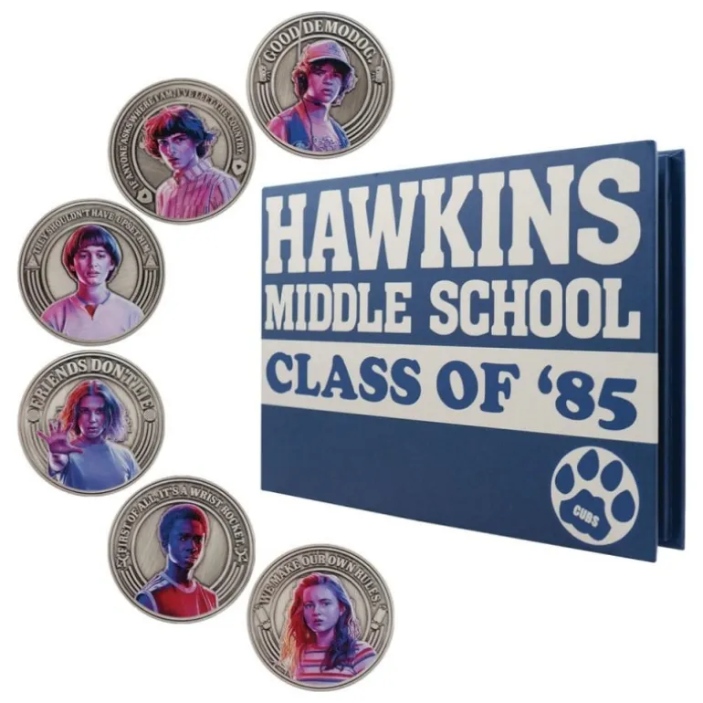 Descubre el exclusivo Álbum Coin Stranger Things Edición Limitada 1985, un artículo de coleccionista imprescindible para los fans de la exitosa serie. Este magnífico álbum incluye 6 detalladas monedas que representan a los icónicos personajes de Hawkins Middle School, todo ello en un diseño evocador del año 1985. Fabricado por FaNaTtik y con licencia oficial, cada moneda está decorada con las imágenes de los personajes junto con frases emblemáticas, brindando una experiencia nostálgica y auténtica.