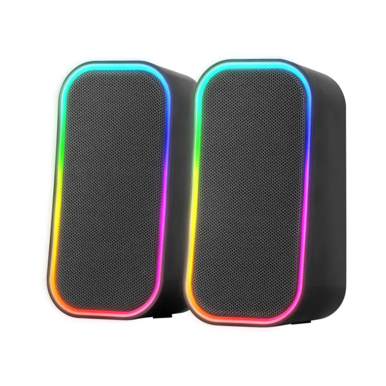 ALTAVOCES MS-OM. Transforma tu juego con los altavoces MS-OM de 20W y avanzado chipset DSP que ofrecen un sonido nítido y envolvente. Disponibles en blanco y negro, estos altavoces destacan en tu setup con su diseño frontal en malla textil y una iluminación RGB control dinámica. Con conectividad Bluetooth 5.3 y AUX-IN, caja de control y compatibilidad universal, los MS-OM son el complemento perfecto para tu setup.