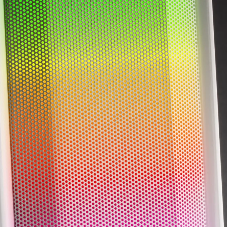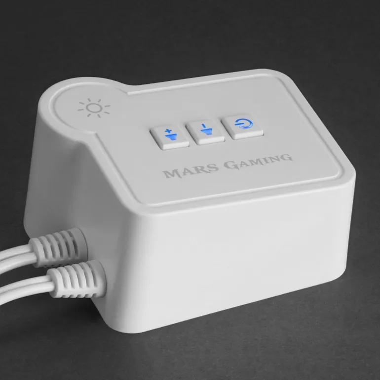 A primera vista cabe destacar su espectacular sistema RGB Full Mesh, con el que se ilumina la rejilla de los altavoces por completo. Podrás elegir cómodamente entre 6 espectaculares modos de iluminación dinámica RGB gracias a su caja de control desde donde también podrás seleccionar de forma muy sencilla la fuente de sonido (cable o Bluetooth), el nivel de volumen y su encendido/apagado.