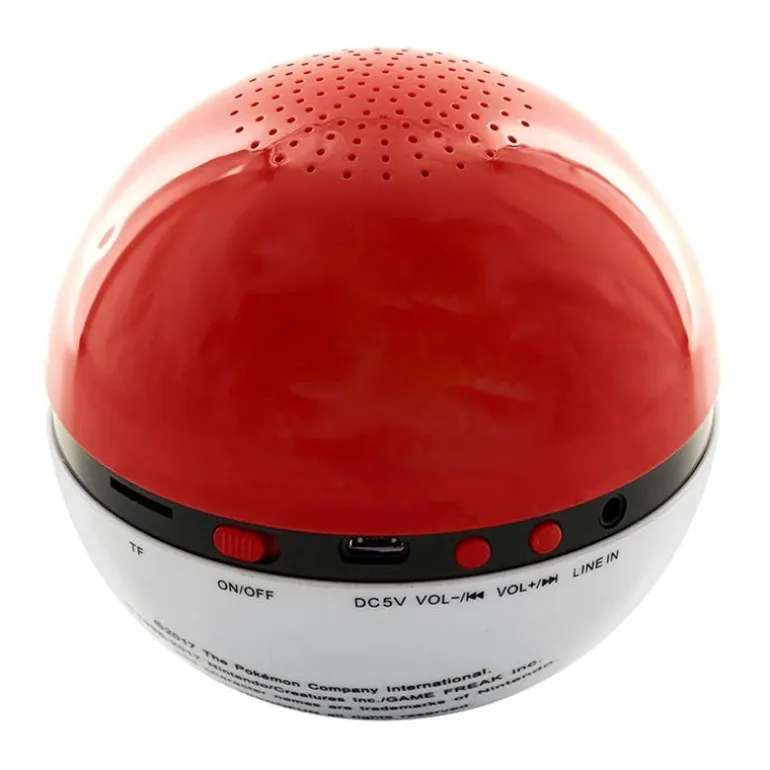 Un altavoz muy especial con forma de Pokeball, ese objeto que todo entrenador Pokémon que se precie debe tener a mano. Tiene una calidad de sonido fantástica para su pequeño tamaño, e incluye u puerto USB y entrada de micro SD. Además, funciona con batería de litio recargable e incluye cable para cargar y un cable de audio. Mide en torno a 10 x 10 cm y su diseño reproduce perfectamente la forma y colores de una pokeball.