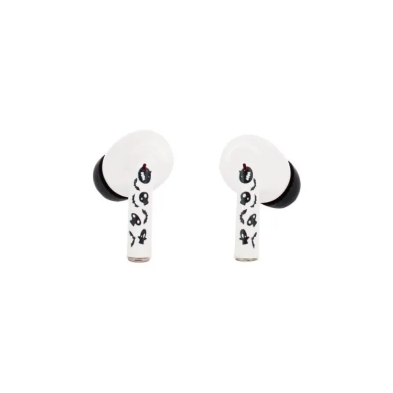 Descubre la magia de Pesadilla antes de Navidad con estos auriculares inalámbricos TWS Buds Pro de Jack Skellington. Con un diseño único y detalles cuidados, estos auriculares son un complemento perfecto para cualquier fan de la icónica película. El estuche de carga presenta la emblemática imagen de Jack, con su característico traje a rayas blancas sobre fondo negro, mientras que los auriculares en sí están adornados con pequeñas calaveras en blanco y negro, evocando el estilo inconfundible de Halloween Town.