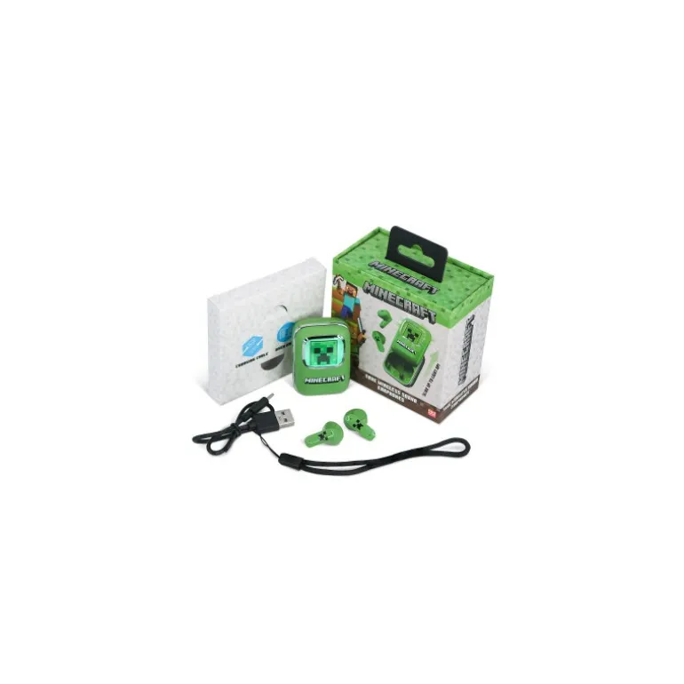 Descubre los Auriculares Inalámbricos True Wireless con un diseño exclusivo de Minecraft. Estos auriculares presentan un impactante color verde, con detalles icónicos del juego, como el conocido creeper en el estuche de carga. El estuche está diseñado para recordar a los clásicos teléfonos móviles deslizantes y cuenta con una pantalla LED iluminada para un toque futurista y funcional.