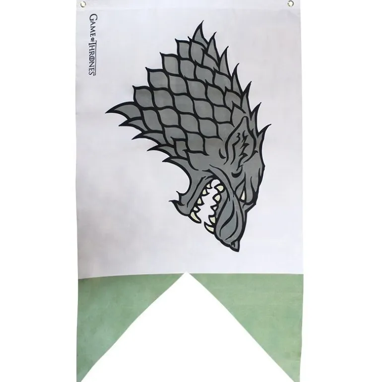 Esto es lo único que te falta para que todo el mundo sepa que en tu casa sois de los Stark incondicionalmente. Nada menos que una enorme bandera de Juego de Tronos en blanco y verde con el elegante lobo o huargo de los Stark