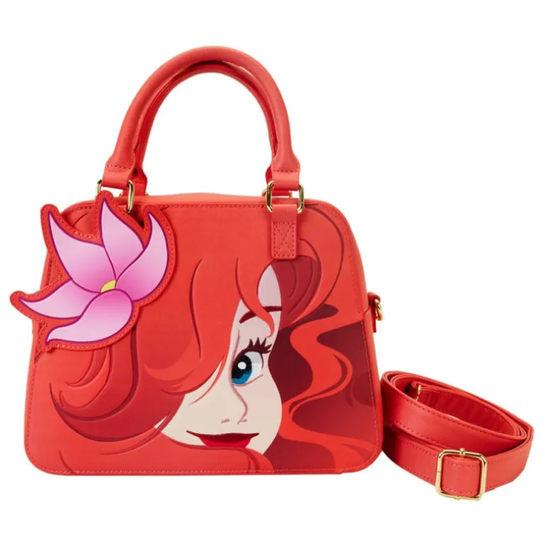Con unas dimensiones de 25 x 10 x 33 cm, esta bandolera presenta un diseño único que celebra el 35 aniversario de la película de La Sirenita de Disney. En el diseño, se destaca el primer plano de Ariel, la Sirenita, con las asas de color rojo que hacen referencia a su característico cabello.