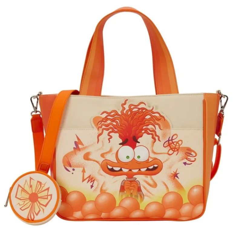 La ilustración del personaje de Anxiety, con sus vibrantes tonos naranjas y detalles expresivos, capta la esencia de la película Inside Out. Ideal para cualquier ocasión, ya sea como regalo original o un capricho para ti mismo. La presencia de una cartera a juego añade practicidad y complementa el estilo distintivo de esta pieza.