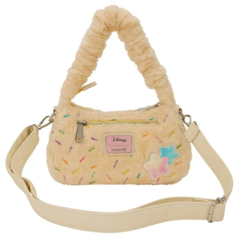 El interior está forrado con un encantador estampado de algodón de dulces y estrellas, que añade un toque juguetón y colorido. La correa ajustable permite llevarla cómodamente al hombro o cruzada, adaptándose a tu estilo y necesidades diarias.