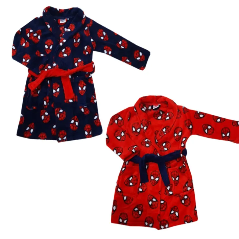 Si estás buscando un batín lana de Spiderman de Marvel cómodo y calentito para tu pequeño, lo tenemos!. Esta bata de niño con bolsillos cuenta con un estampado con un precioso mosaico de la máscara de Spiderman. Tallas disponibles desde los 3 años hasta los 8 años.