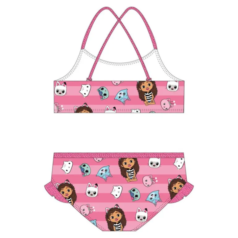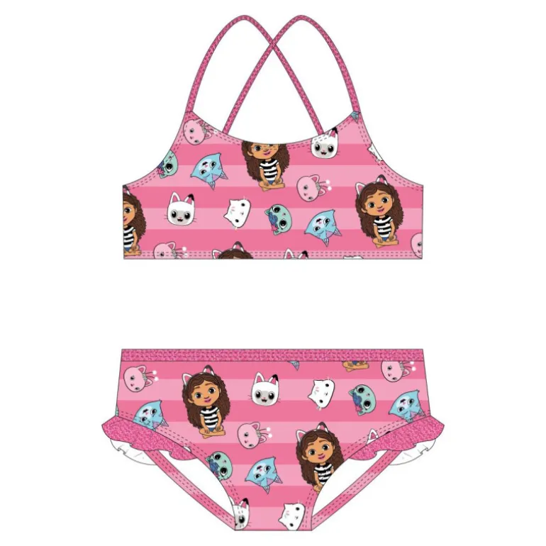 Descubre el encantador bikini Gabby’s Dollhouse, ideal para las pequeñas fanáticas de esta popular serie. Diseñado en un vibrante color rosa, este conjunto de baño destaca por sus llamativas ilustraciones de personajes entrañables. El top presenta tirantes cruzados en la espalda, asegurando un ajuste cómodo y seguro para disfrutar de un día de juegos en el agua.