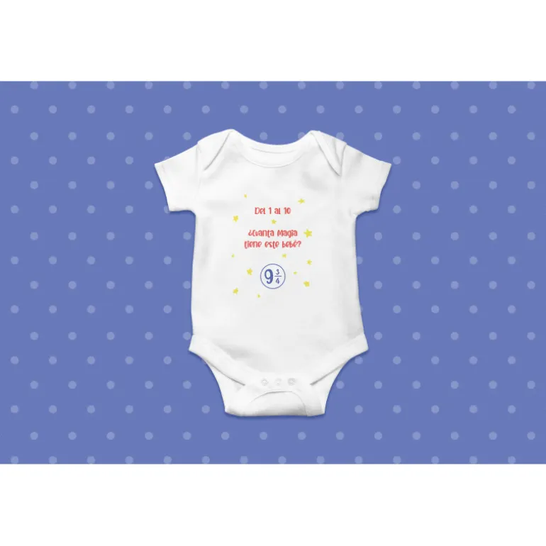 Se trata de un body diseñado en Europa con algodón de gran calidad inspirado en Harry Potter. ¿Cómo de mágico es tu bebé? Déjalo claro con este body blanco algodón y su diseño impreso, haciendo referencia al icónico Andén 9 ¾ .