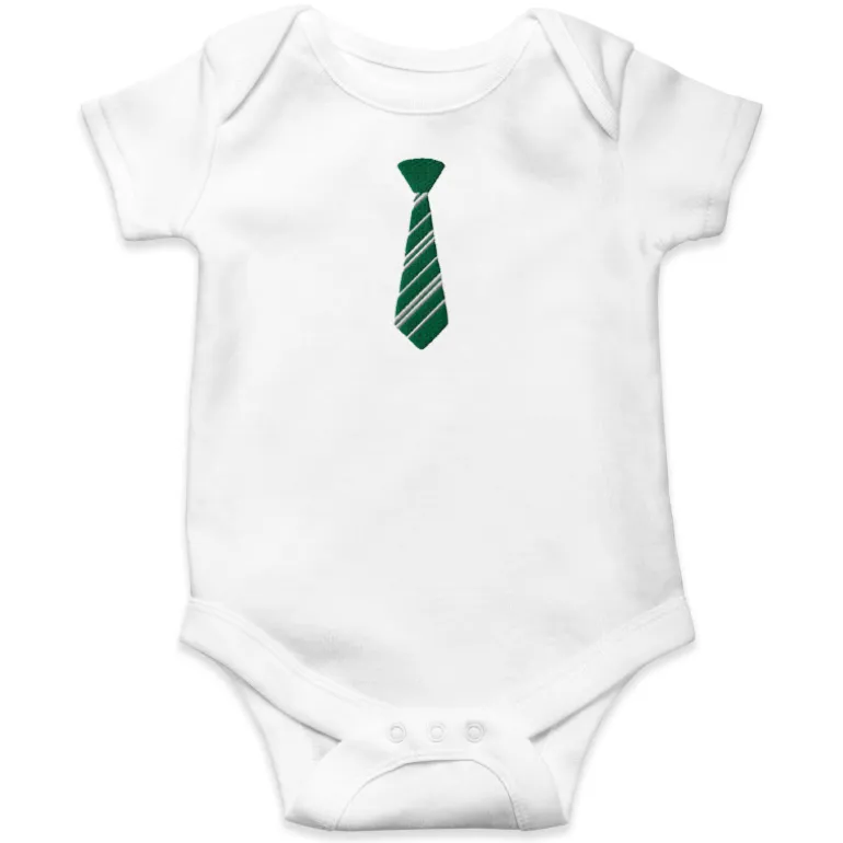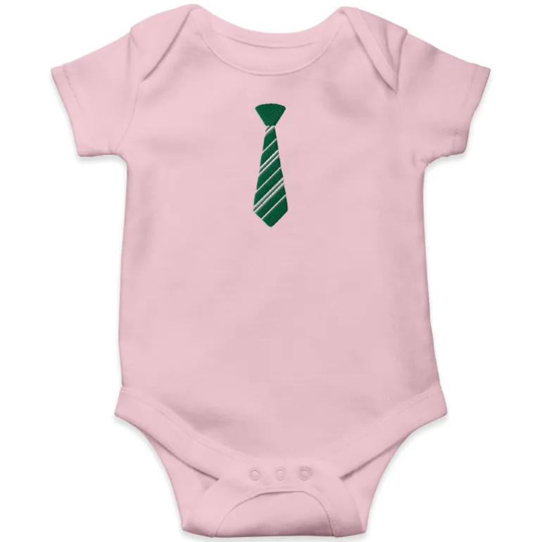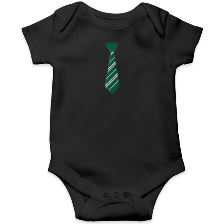 Se trata de un body diseñado en Europa con algodón de gran calidad inspirado en Harry Potter. Pero sin duda lo mejor es su diseño, en unos fondos de diferentes colores chulísimos como los de los uniformes de los coles, tiene bordada con mucho relieve una corbata de su casa de Hogwarts favorita: Slytherin.
