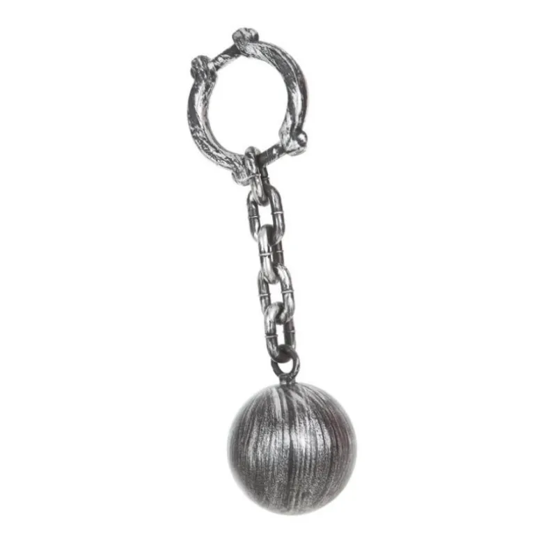 Bola de Preso con cadena de 56 cm. Accesorio ideal para nuestros disfraces de preso, presidiario o fantasma. Ideal en Halloween y fiestas del terror.