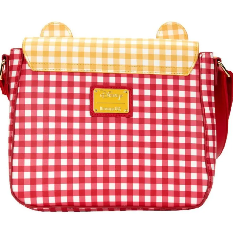 Pero sin duda lo más sorprendente es su diseño, con un estampado de cuadros, como los típicos manteles de pic-nic, y la carita de Winnie the Pooh en la parte delantera, tan adorable como siempre y relamiéndose porque está a punto de degustar su comida favorita, la miel. No te pierdas los cuidados detalles de este bolso, como los colgantes con forma de abeja, las partes bordadas en hilo o el estampado de su interior, donde aparecen el resto de amigos de Winnie the Pooh.