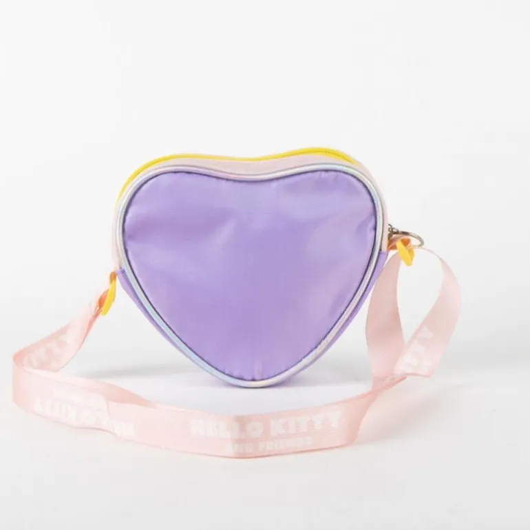 La cremallera amarilla asegura que tus pertenencias estén seguras, mientras que la correa ajustable con el texto ‘Hello Kitty and Friends’ añade un toque personalizado y cómodo. El bolso ofrece suficiente espacio para guardar lo esencial de cualquier pequeño fan.