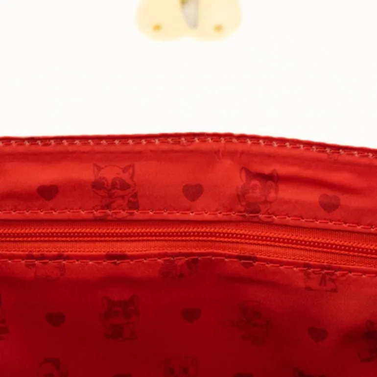 Descubre el Bolso Loungefly Funko Villainous Valentines Crossbody, una joya de diseño que captura la esencia nostálgica de las tarjetas de San Valentín de los años 50. El estampado integral presenta adorables animales como gatos, perros y mapaches, todos encuadrados en corazones con detalles florales. Este bolso, hecho de cuero vegano, incluye un cierre único en forma de corazón con un pasador que asemeja un cuchillo, añadiendo un toque audaz y divertido.
