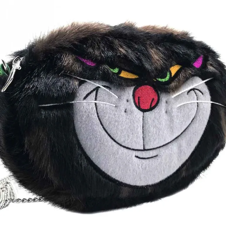 Dentro de esta colección nos llega este pequeño bolso con cadenita para colgar con la forma de la cara de Lucifer, el gato de la genial película clásica La Cenicienta. Con unas medidas de 24x22x5 cm, su cremallera de gran calidad y su diseño con sus bordados y con su suave pelo gatuno que incita a ser acariciado.
