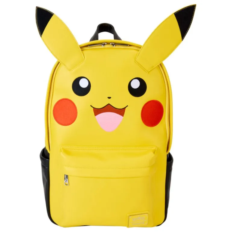 Descubre esta increíble mochila Pokémon Pikachu con licencia oficialy fabricada por Loungefly, ideal para cualquier fanático de la serie. La mochila presenta un vibrante diseño en color amarillo que destaca el rostro de Pikachu, incluyendo sus icónicas mejillas rojas y orejas puntiagudas en relieve. Este detalle tridimensional le añade un toque especial que la hace resaltar.