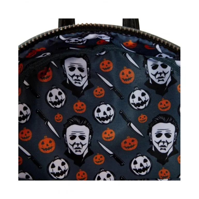 El bolso mochila Michael Myers Loungefly es una pieza excepcional para los amantes del cine de terror. Este producto con licencia oficial se destaca por su diseño único que mezcla funcionalidad y creatividad. La mochila presenta un impresionante relieve de Michael Myers, con detalles en tonos oscuros que evocan el espeluznante ambiente de las películas de terror. Su diseño incluye un exclusivo cuchillo metálico en el frontal y el icónico panel trasero con la casa de Haddonfield, junto con la frase «The Night He Came Home!» impresa. En el interior, un forro personalizado repleto de calabazas y caras de Michael Myers, añade un toque especial e inconfundible. Fabricada con materiales de alta calidad, esta mochila es perfecta para quienes desean demostrar su pasión por el terror de manera estilizada. Además, sus correas ajustables y su construcción resistente garantizan comodidad y durabilidad. Esta mochila no solo es un artículo de moda, sino también un elemento de colección indispensable.