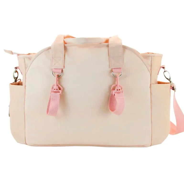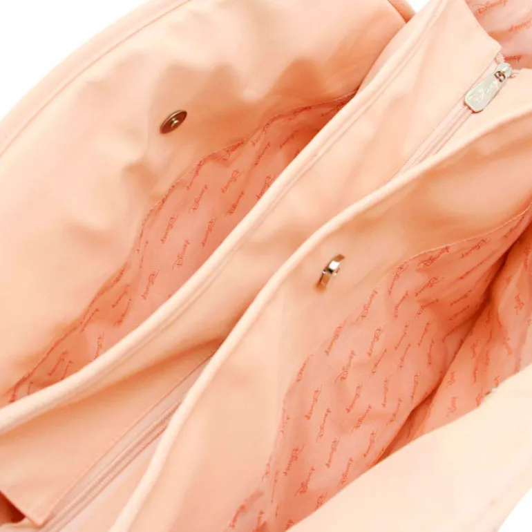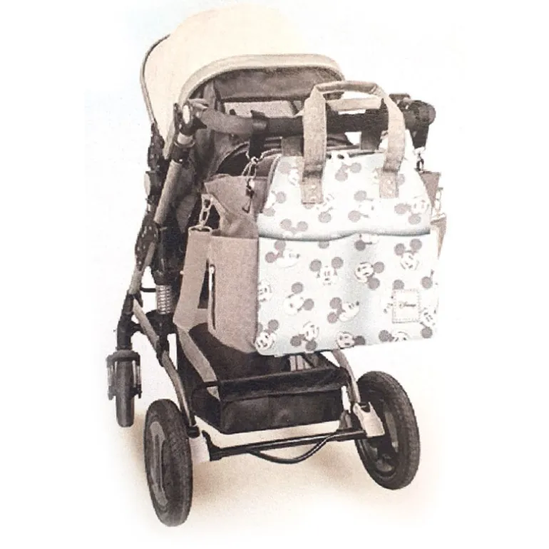 Es un bolsito para el carrito de bebé que mide aproximadamente 32 x 44 x 17 cm, cuenta con un forro interior con cinco bolsillos para organizar los enseres además con un bolsillo lateral y tres bolsillos exteriores adicionales. Pero si por algo te sorprenderá este bolso es por su fantástico diseño, en un elegante color salmón sobre el que destaca a Minnie y los lunares por todo el bolso.