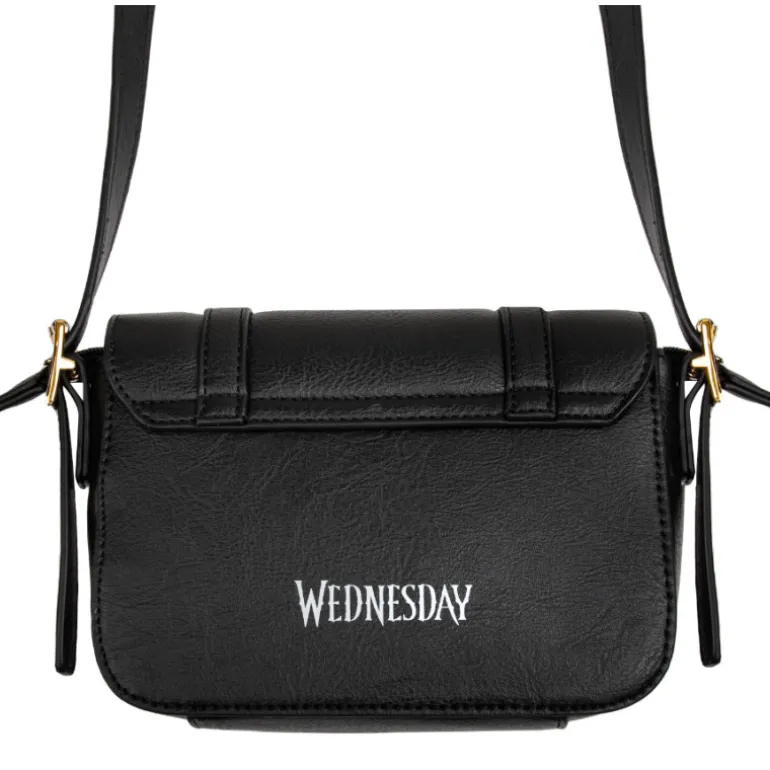 El bolso satchel Nevermore Academy Miércoles, fabricado por Cinereplicas, es un producto de alta calidad que no te dejará indiferente. Con unas dimensiones de 18×13,5×6,5 cm, este bolso está inspirado en la academia Nevermore, donde estudia Miércoles y cuenta con detalles únicos como una cremallera con la forma de la mano Cosa.