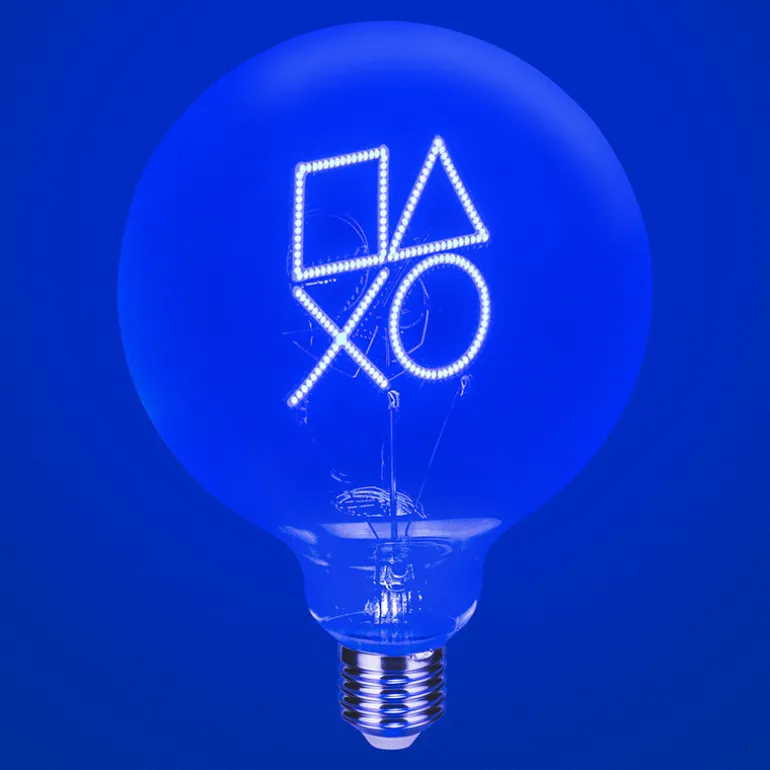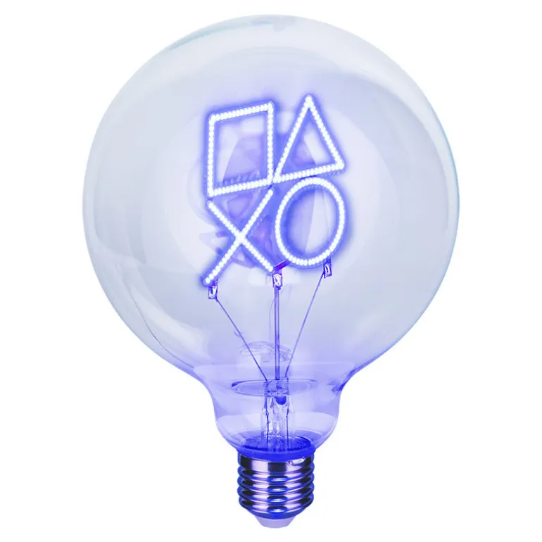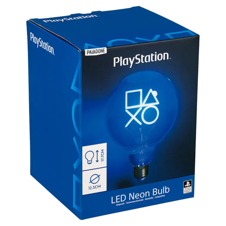 Descubre la Bombilla LED Neon Playstation, un producto con licencia oficial que combina diseño y funcionalidad. Esta bombilla de diseño esférico presenta los icónicos símbolos de Playstation en un vibrante color azul neón, capturando la esencia de la marca de una manera elegante y moderna.