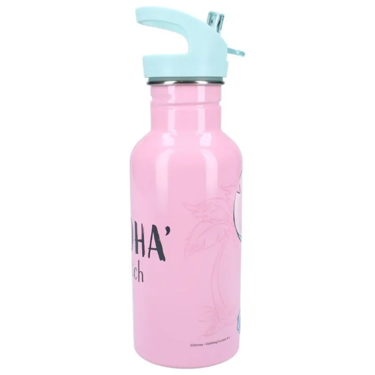 Descubre la botella de acero inoxidable Lilo & Stitch de 500 ml, un artículo imprescindible para los amantes de Disney. Esta encantadora botella presenta un diseño alegre con el personaje de Stitch sobre un fondo rosa pastel. La tapa azul claro con pitorro retráctil facilita beber sin derrames, ideal para niños y adultos.