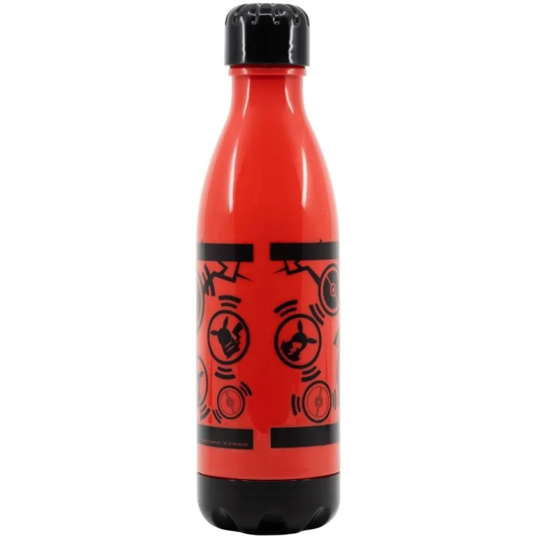 Se trata de una botella de gran calidad, fabricada en plástico duro aislante y libre de BPA, con un sistema de cierre perfecto para el uso cotidiano. Pero lo mejor su genial diseño, en un color rojo que te enamorará nada más lo veas y con la silueta del que seguramente es el animalito más icónico de Pokémon, Pikachu, junto con los dibujos de varias pokeball.