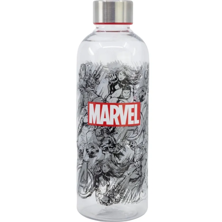 Descubre la botella de agua reutilizable de Marvel, perfecta para los amantes del universo de los superhéroes. Esta elegante botella de plástico tiene una capacidad de 850 ml, ideal para mantenerte hidratado durante todo el día. Su diseño es un homenaje a algunos de los personajes más icónicos del mundo del cómic de superhéroes, Viuda Negra, Hulk, Iron Man, Thor, El Capitán América… con detalles artísticos en tonos monocromáticos que resaltan el logo de Marvel en rojo vibrante.