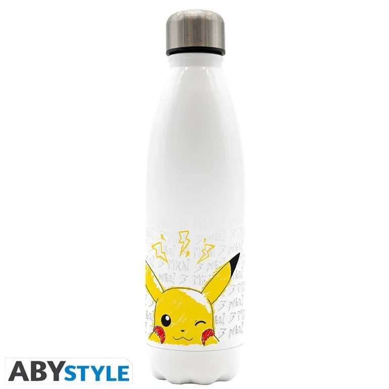 Descubre la botella térmica de Pikachu Scribble, perfecta para los fanáticos de Pokémon que desean llevar estilo y funcionalidad a su día a día. Este producto con licencia oficial destaca por su diseño en tonos blancos con un encantador dibujo de Pikachu en su característica pose alegre y electrizante, acompañado de detalles en amarillo y rojo.