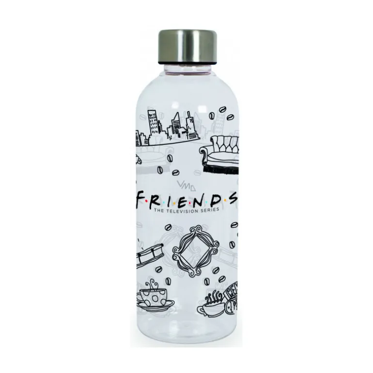 Una preciosidad de botella para llenarla de agua, zumo… ¡o lo que tú quieras! Se trata de una práctica botella con una capacidad de nada menos que 850 ml, y con un diseño espectacular, basado una de las series más queridas por varias generaciones: Friends.