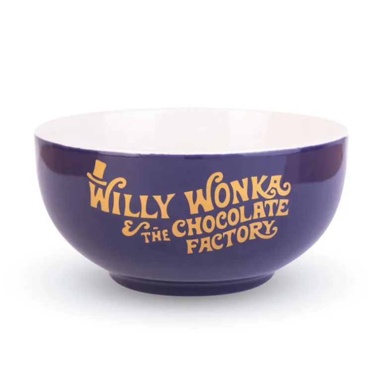 El diseño del tazón presenta un fondo morado con el logotipo de Willy Wonka and the Chocolate Factory en dorado, lo que lo hace atractivo visualmente y perfecto para los fanáticos de la famosa película. Además, este producto cuenta con licencia oficial, lo que garantiza su autenticidad y calidad.