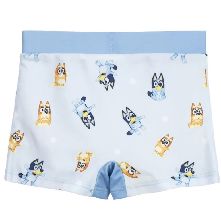 Descubre el encantador boxer de baño Bluey diseñado especialmente para los más pequeños de la casa. Este divertido traje de baño presenta un fondo azul claro adornado con adorables ilustraciones de Bluey y sus amigos, creando un look lleno de color y alegría. El diseño es perfecto para los pequeños seguidores de esta popular serie infantil.