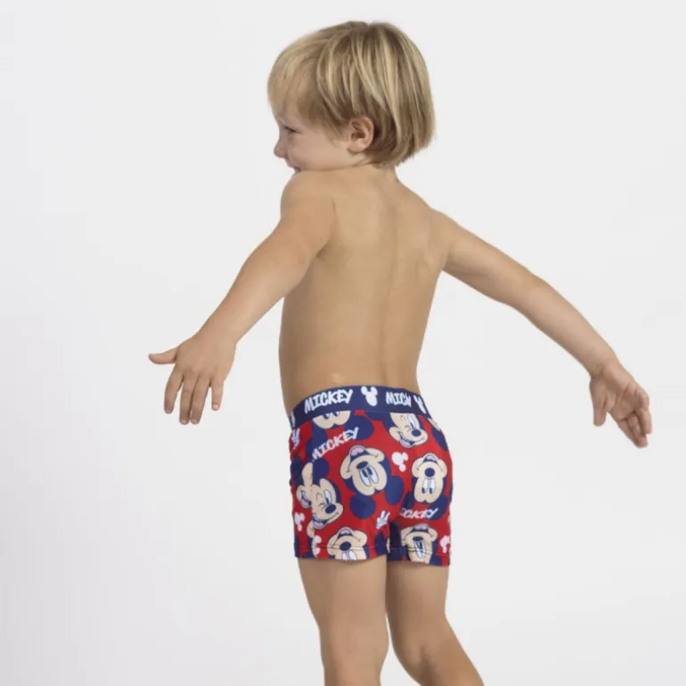 Descubre el encantador boxer de baño de Mickey diseñado especialmente para los pequeños aventureros de 2 a 6 años. Este traje de baño cautiva con su vibrante diseño en tonos azules y rojos, adornado con las icónicas caras de Mickey en diferentes expresiones que brindan un toque divertido y emocionante.