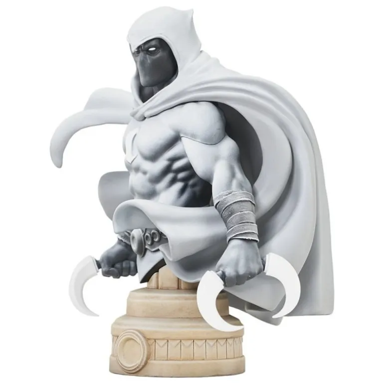 Descubre la impresionante figura de colección del enigmático Moon Knight en este busto de poliresina de 13 cm. La pieza muestra a Moon Knight en una poderosa pose, con su distintiva capa ondeando en el aire. El detalle en su traje es impecable, destacando el emblema del creciente lunar en su pecho. Esta edición limitada a 2000 unidades viene con un certificado de autenticidad, asegurando su exclusividad.