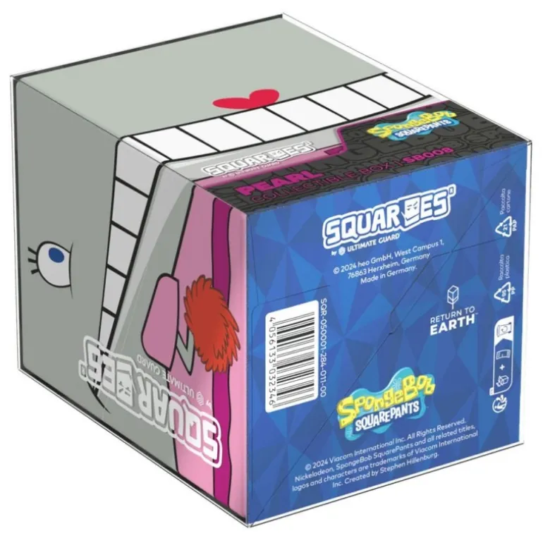 Descubre la caja coleccionable Pearl Squaroe, diseñada especialmente para los fans de SpongeBob SquarePants™. Este artículo único se caracteriza por su alegre diseño inspirado en Pearl, con un esquema de colores que incluye gris, rosa, y un toque de rojo. Perfecta para almacenar mazos de TCG, accesorios de juegos de mesa o tus objetos de colección favoritos.
