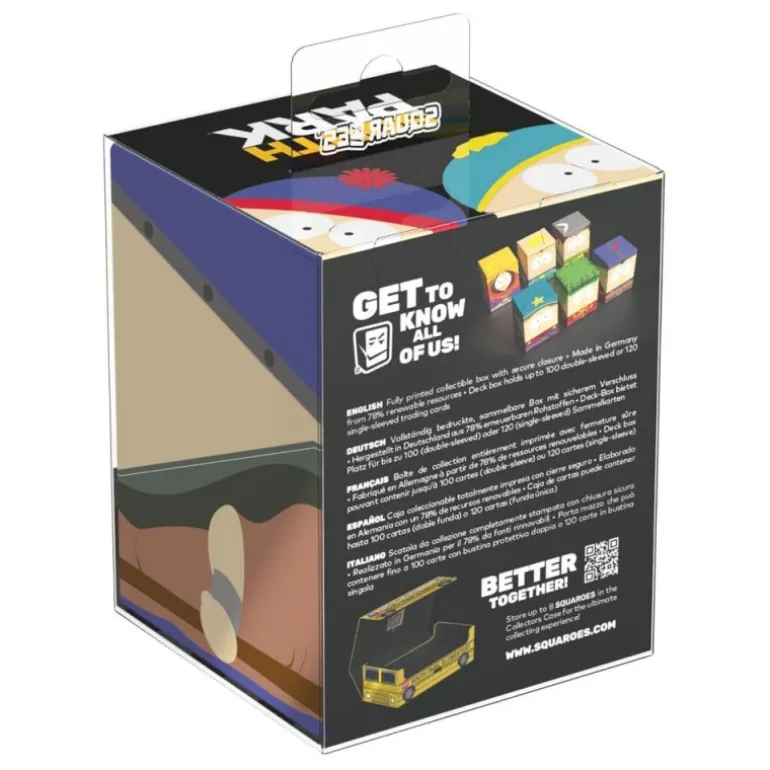 Descubre la caja coleccionable Squaroe South Park™: The Stick of Truth SP013, representando al icónico Stan Marshwalker. Con unas dimensiones de 8,1 x 8,2 x 10,5 cm y un peso de 178 gramos, esta caja es la elección perfecta para los amantes de South Park™ y jugadores de cartas coleccionables. Su diseño utiliza un 78% de recursos renovables, reflejando un compromiso con la sostenibilidad.
