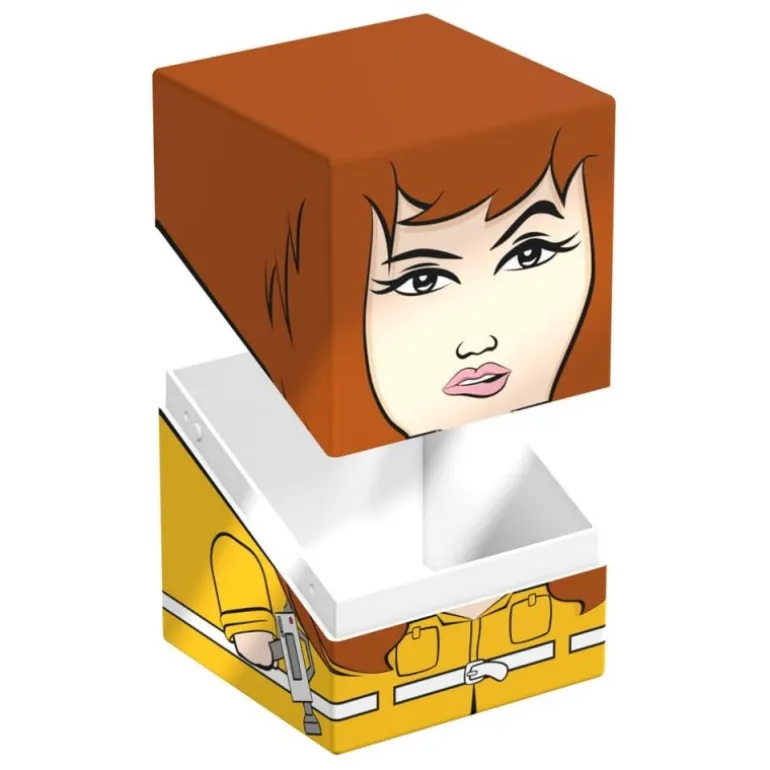 La Caja Coleccionable Squaroes April TMNT™ 009 es un homenaje único al emblemático personaje de la serie Tortugas Ninja. Con un diseño cuadrado estilizado, esta caja presenta un retrato llamativo de April O’Neil en tonos naranjas y amarillos, perfecto para los amantes de la serie. Con medidas de 7,8 x 7,9 x 10,5 cm y un peso de 177 gramos, es ideal tanto para coleccionistas como para jugadores de cartas.