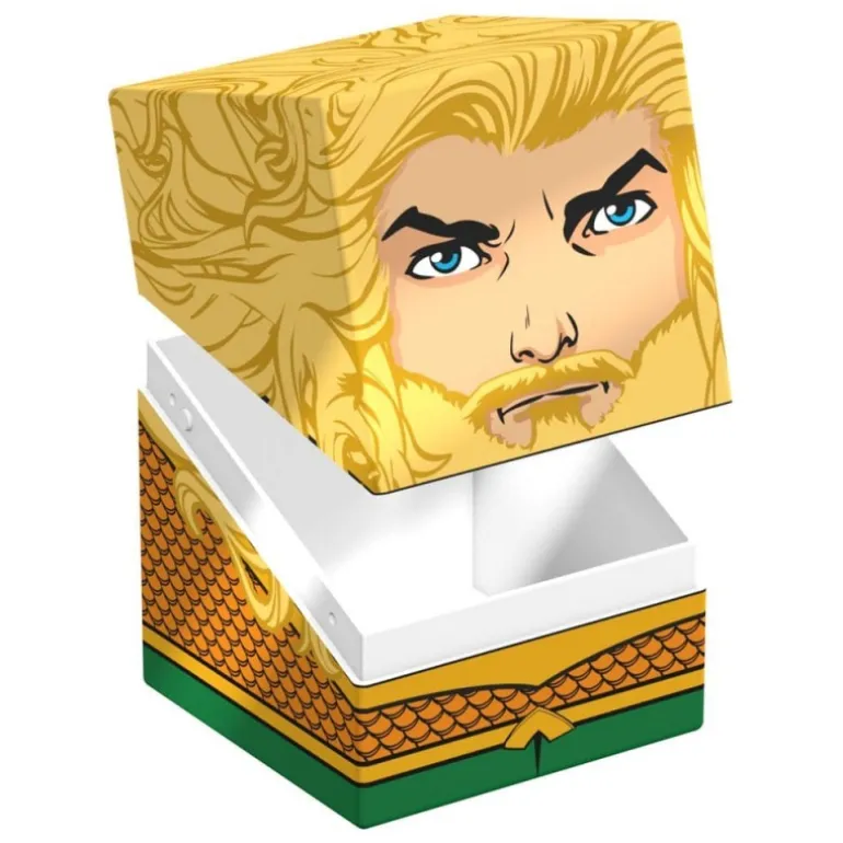 Descubre la Caja Coleccionable Squaroes – Aquaman™ JL007, un homenaje al legendario héroe de la Justice League™. Con sus dimensiones de 7,8 x 10,8 x 8 cm y un peso de 179 gramos, esta caja es perfecta para los amantes de los cómics y los coleccionistas. Con un diseño cuadrado que capta la esencia de Aquaman™, la caja está íntegramente impresa y cuenta con un cierre seguro, ideal para almacenar hasta 100 cartas en doble funda o 120 en funda simple.
