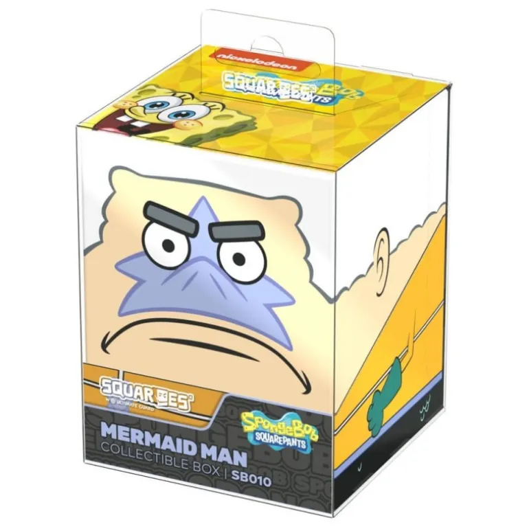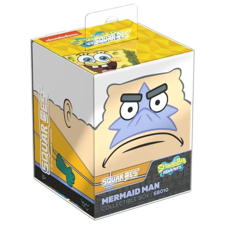 Descubre la Caja Coleccionable Squaroes Mermaid Man de la edición SpongeBob SquarePants, una pieza única para guardar tus mazos de cartas y accesorios de juegos favoritos. Con un diseño completamente impreso que refleja al entrañable personaje Mermaid Man, esta caja se convierte en un imprescindible para los amantes de la serie. Su tamaño de 8,1 x 8,2 x 10,5 cm y peso de 173 gramos, permite almacenar hasta 100 cartas con fundas dobles o 120 con fundas simples, manteniéndolas siempre seguras gracias a su cierre firme.