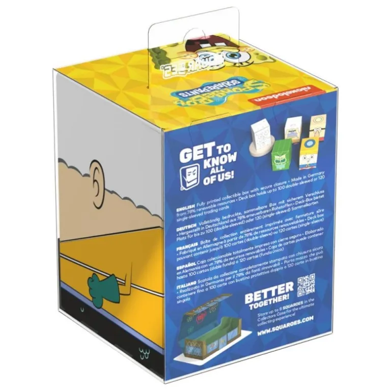 Fabricada en Alemania, destaca por su construcción ecológica con un 78% de recursos renovables, asegurando calidad y sostenibilidad. Además, los Squaroes se adaptan al Collectors Case disponible por separado, optimizando tu espacio de colección. Ideal para cualquier fan del universo de SpongeBob SquarePants, esta caja no solo organiza sino que también añade un toque de diversión a tu colección.
