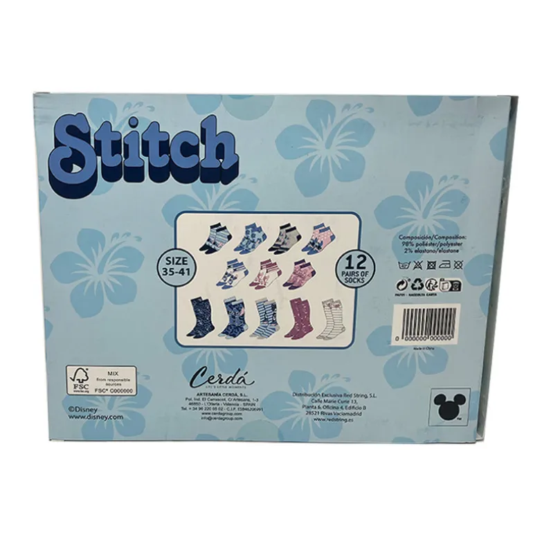 La Caja regalo 12 pares calcetines Stitch es una opción innovadora y atractiva para quienes buscan un regalo original y de calidad. Con un rango de tallas que abarca del 35 al 41, esta colección es perfecta para una amplia variedad de usuarios, garantizando comodidad y estilo simultáneamente.