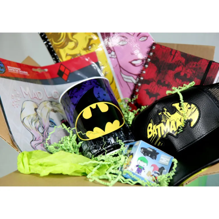 Pues don’t panic, que hemos preparado unos cuantos lotes sorpresa para que no puedas fallar y que no te dejes nada imprescindible. Te pueden tocas unas zapatillas de Batman, o quizás una agenda de Wonder Woman, quién sabe si un llavero del Superman o una taza de Flash… todo lo que hay en nuestra categoría de supertipos te puede caer en una de nuestras cajas, eso si, solemos tener más cositas de Batman en concreto.