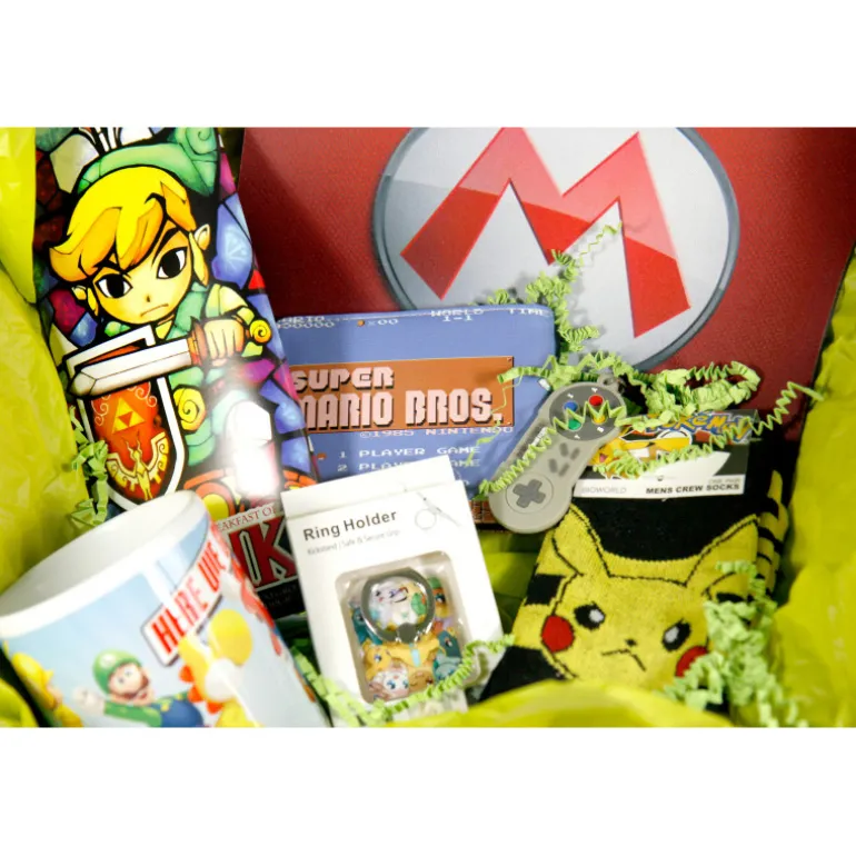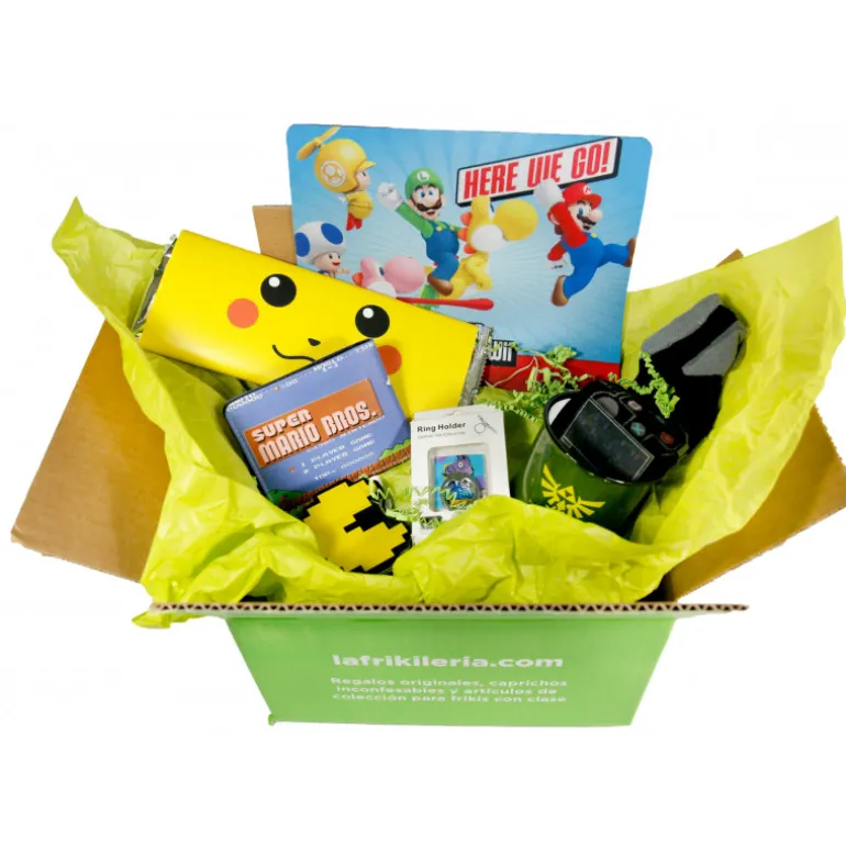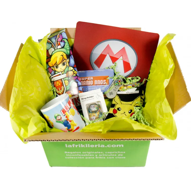 Está llena hasta arriba de cosas de videojuegos para gamers de hoy, ayer y siempre. Todo lo que tenemos en nuestras categorías de videojuetos de y que nos quepa en la caja puede caerte en esta caja sorpresa tan molona: tal vez una gorra Nintendo, o unas zapas de casa de Super Mario o unos snacks de Pokemon o tal vez alguna cartera de God of War o unos boxer de Fallout o alguna taza de Zelda…tooooodo.