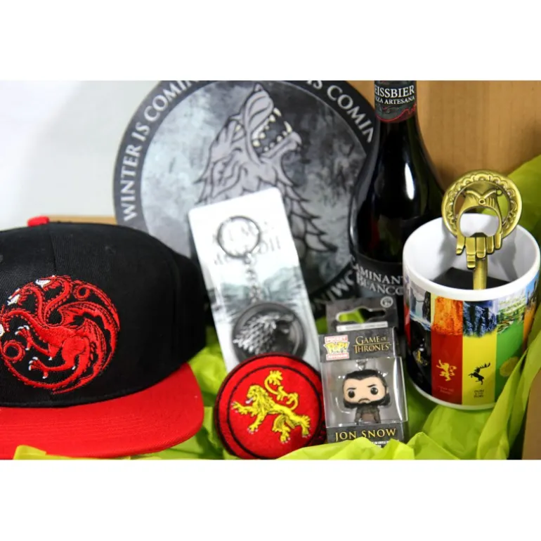 Pues don’t panic, que hemos preparado unos cuantos lotes sorpresa para que no puedas fallar y que no te dejes nada imprescindible. Te puede tocar la gorra de los Targaryen, la cerveza de Poniente, una alfombrilla de los Stark, la jarra de los Lannister…o un montón de cosas más.