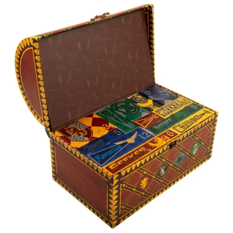 Descubre la magia del mundo de Harry Potter con este espectacular calendario de adviento Quidditch Deluxe 2025. Presentado en una caja con temática de baúl de Quidditch, decorada con los escudos de las cuatro casas de Hogwarts, cada día revela una sorpresa mágica para los verdaderos fans. Con 24 artículos únicos, desde calcetines y bolsas con cordón hasta un collar de la snitch dorada y un globo de mylar, este calendario es el regalo perfecto para transformar el adviento en una aventura mágica. Fabricado por Cinereplicas, cada artículo ha sido cuidadosamente seleccionado y diseñado para capturar el espíritu del universo de Harry Potter. Ideal como regalo o un capricho personal, este producto con licencia oficial promete hacer de cada día de diciembre un emocionante descubrimiento.