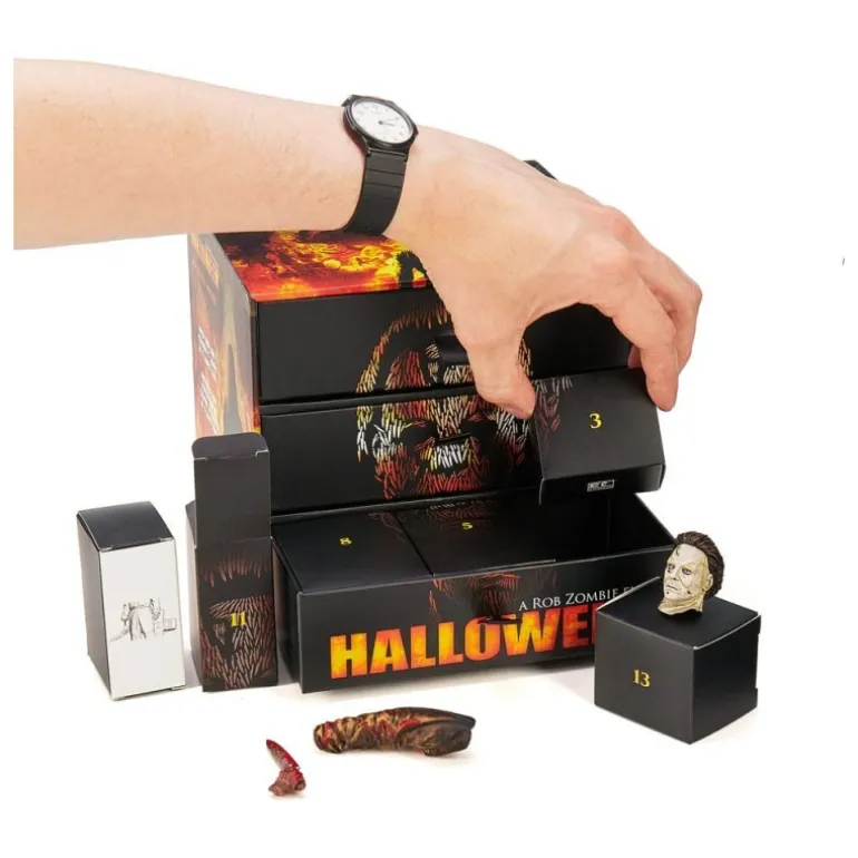 Descubre el Calendario de Adviento de Michael Myers, una pieza imprescindible para los amantes del terror y el cine de culto. Este calendario cuenta con 13 piezas que se combinan para formar una figura detallada de Michael Myers, el icónico personaje de Halloween. Perfecto para añadir un toque escalofriante a tu decoración.