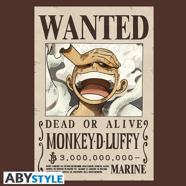 Fabricada por ABYstyle, presenta un diseño icónico del cartel de «Wanted» de Luffy, con su característica sonrisa llena de confianza.