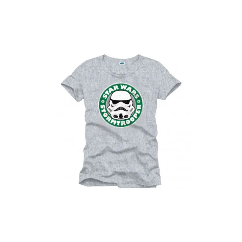 Es que además su diseño es absolutamente genial, con un fondo gris claro sobre el que desataca un dibujo realmente divertido. Es un Stormtrooper de Star Wars dentro de un círculo verde que evoca inmediatamente al logotipo de la famosa cadena de cafetería americanas Starbucks.